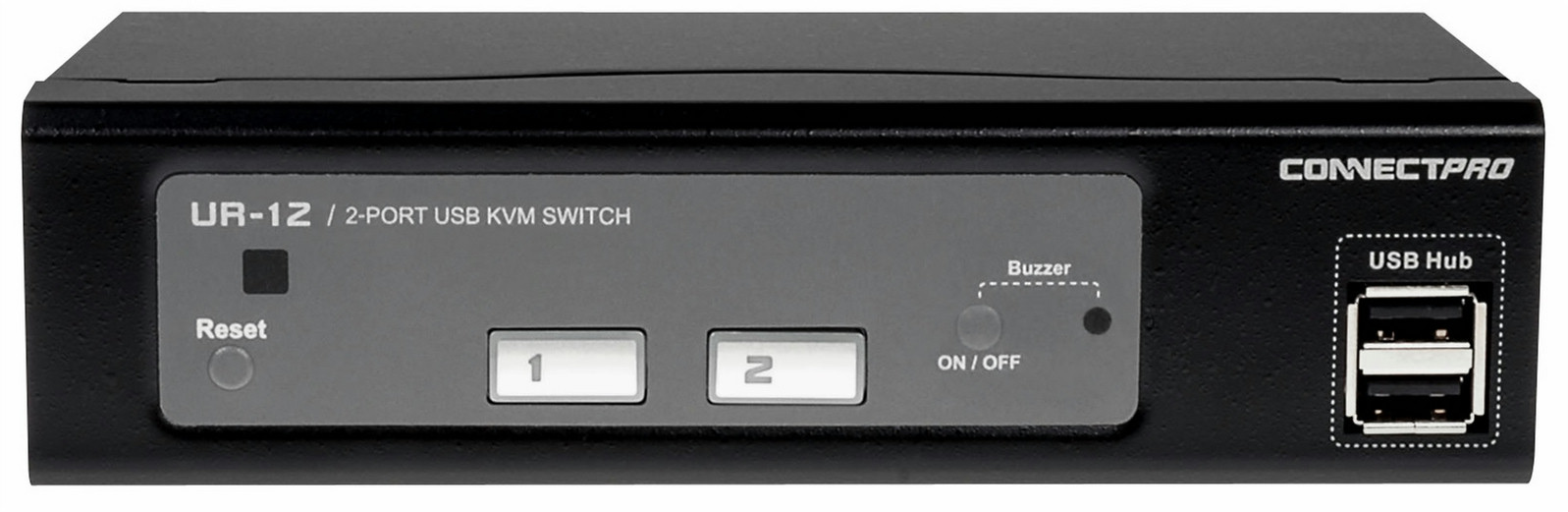ConnectPRO's all-new UR-12 is the most reliable, Windows 7 Compatible, desk-top solution for controlling 2 USB computers from a single console. With 4 USB hub ports, a customer can connect more than just a keyboard and mouse to the KVM, allowing for additional USB 2.0 devices to be shared. Switch between the computers with the push of a button.