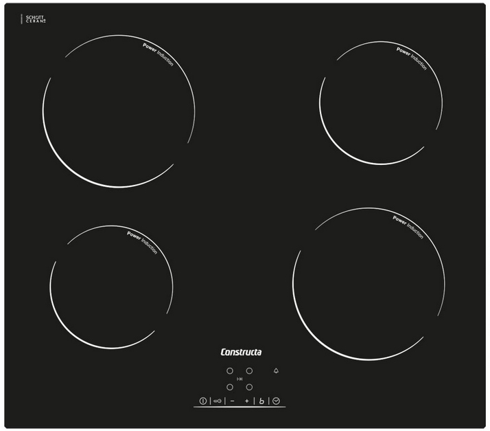 Constructa CA431230N. Case design: Built-in, Hob type: Induction, Colour of product: Black. Control type: Sensor, Touch, Control position: Top front. Connected load (electric): 3680 W. Installation compartment width: 56 cm, Installation compartment depth: 50 cm, Installation compartment height: 5.1 cm