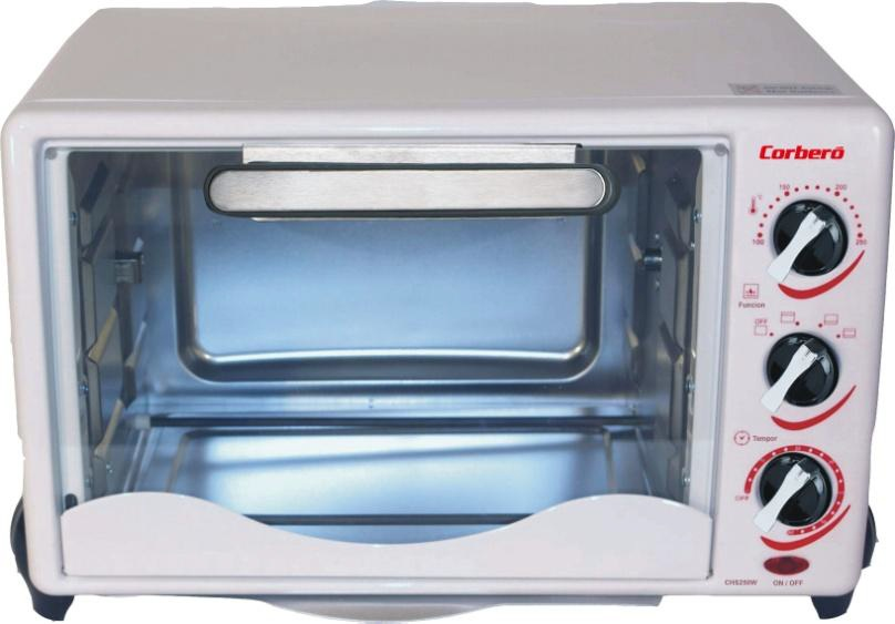 Corbero CHS 250W. Oven type: Electric oven, Total oven(s) interior capacity: 25 L, Total oven power: 1500 W. Colour of product: White, Control type: Rotary, Housing material: Stainless steel. Timer type: Mechanical. AC input voltage: 230 V, AC input frequency: 50 Hz. Width: 330 mm, Depth: 500 mm, Height: 280 mm