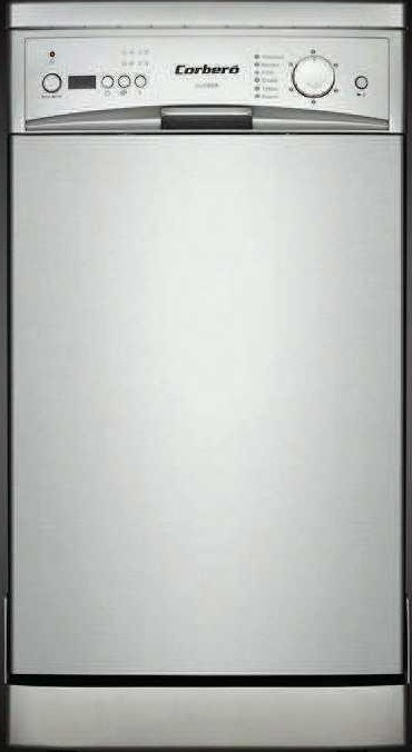 Corbero CLV200X. Type: Freestanding, Door colour: Stainless steel, Control panel colour: Stainless steel. Number of place settings: 9 place settings, Noise level: 49 dB, Drying class: A. Energy efficiency class: A+, Energy consumption per cycle: 0.77 kWh, Water consumption per cycle: 10.5 L. Width: 450 mm, Depth: 580 mm, Height: 850 mm