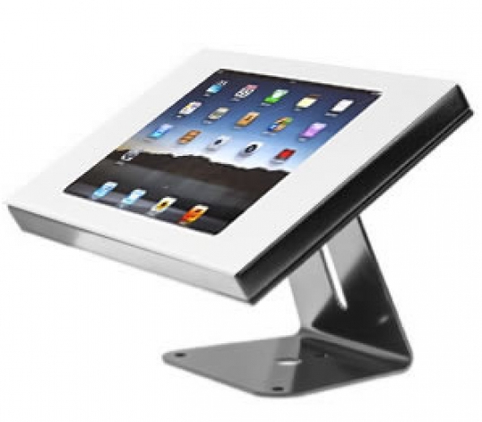The SecureDockTM Classic is a mid-range, high-security, full enclosure for iPad 2, 3 and 4. It is constructed from steel and powder coated in white. The faceplate of the enclosure is secured to the backplate from the rear with security screws.