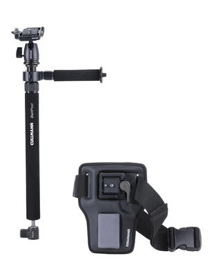 For secure fastening of the camera, the BeltPod Multi-Set comes with a sturdy, removable CB5.3 ball head with camera QRC System*. With the holding/guide handle the video column made of anodized aluminium tube can be quickly and easily attached in any position. With the length-adjustable video column the mounted camera can be exactly adjusted to lens height and thus enables the user to work comfortably. Thanks to the compact packing dimension, the BeltPod Multi-Set is ideally suited for outdoor use.