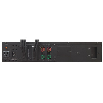 The BPL48V75ART2UTAA external battery pack houses eight (8) 12v 9Ah batteries, connected serially in two (2) strings of four (4) batteries. It is designed to match the appearance of the Smart App Online UPS models and can be similarly mounted in 2U rack or tower configurations. A battery data link transmits the unit’s diagnostic vitals to the UPS display for real-time monitoring and a heavy gauge power cord, adapted with plug-n-play DC connectors, permits the battery pack to be easily “hot-swapped”, ensuring continuous operation of critical systems, during normal UPS maintenance.