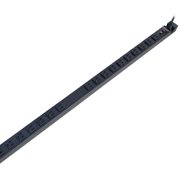 The CyberPower 20-outlet (20 Front) 0U vertical rack mount basic power distribution unit (PDU15BV20F) provides 120V 15A output. It distributes power to 20 NEMA 5-15R receptacles from a single NEMA 5-15P plug, with unfiltered electrical pass-through. Designed for datacenters and other electrically demanding applications, this unit has a rugged, industrial-grade metal housing and a 10-foot AC power cord. It supports vertical, horizontal and wall mount installation, includes a cord retention tray and is ETL/RoHS certified. A lifetime warranty ensures that this PDU is free of defects in design, assembly, material or workmanship.