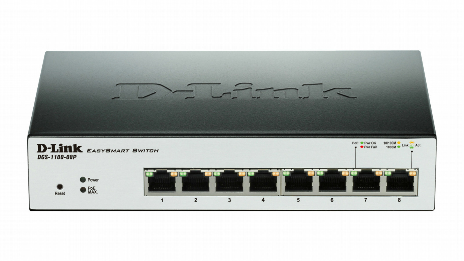 DGS-1100-08P, EasySmart, 8-Port, Gigabit, PoE Switch