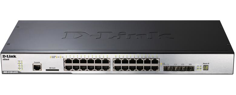 The DGS-3120 xStack Series are enhanced L2 access stackable switches designed to connect end-users in a secure SMB or enterprise network. These switches support physical stacking, multicast and enhanced security, making them an ideal Gigabit access layer solution. The DGS-3120-24TC/48TC provides 20 or 44 10/100/1000 Mbps Gigabit Ethernet ports and 4 combo 1000BASE-T/SFP Gigabit Ethernet ports. Each 10/100/1000 Mbps port of DGS-3120-24PC/48PC supports 802.3af and 802.3at Power over Ethernet standard. The default power budget is 370 Watts and can be expanded to 740 Watts with the DPS-700 RPS. The switches are also equipped with an SD Card slot, allowing the user to boot images and upload configuration files directly from an SD Card. Furthermore, syslog files can also be conveniently saved to a card.