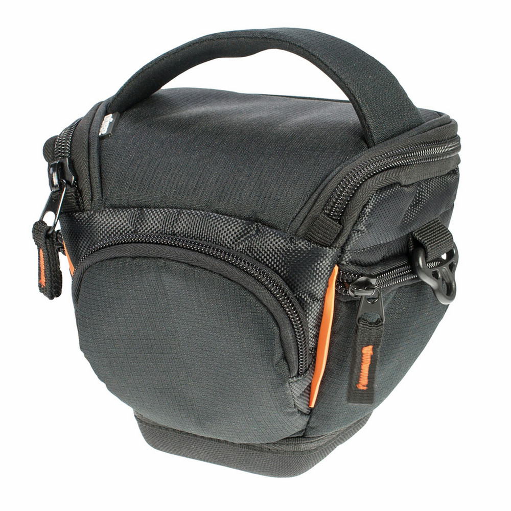 Dorr Dakota Zoomster Holster Bag holds a DSLR with attached short lens. The hard shell bottom of the Dakota bag, provides protection against shock, dirt and moisture. The interior of this bag has a bright orange coloured soft lining, to protect your gear and also the orange colour allows you to see all your equipment easily. The front external compartment allows space for memory cards and other small accessories. Measures 13/7 x 10 x 12cm.