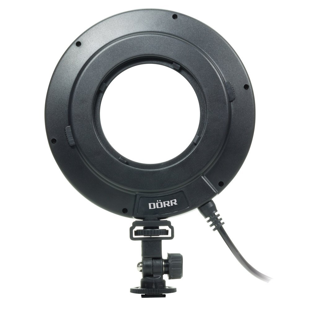 Dorr DRL-232 LED Ring Light with Battery Box is an ultra bright LED ring light with variable brightness adjustment. Ideal for use with macro and close-up photography. This Ring Light comes with the battery box for 6x 1.5V Mignon AA batteries (optional). The order of the LEDs ensures shadow free illumination in the close-up range. For a three dimensional illustration with laterial shadow, the ring light can be positioned above or aside the lens. This DRL-232 LED Ring Light can be attached to a tripod via the 1/4" socket at the bottom. For an optimum direction, use the supplied hinged bracket. Includes 52, 55, 58, 62, 67, 72 and 77mm adapter rings.