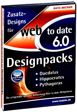 Data Becker Design Kombipack für web to date 6.0 & shop to date 6.0 pro: PYTHAGORAS, HIPPOKRATES, DAEDALUS. Minimum system requirements: web to date 6.0 shop to date 6.0 pro Downloadshop to date 6.0 pro. Language version: German