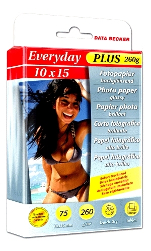 Data Becker Everyday Plus 10x15 Fotopapier 260g/m². Media size (1 slide): 10x15, Media sheets per package: 75 sheets