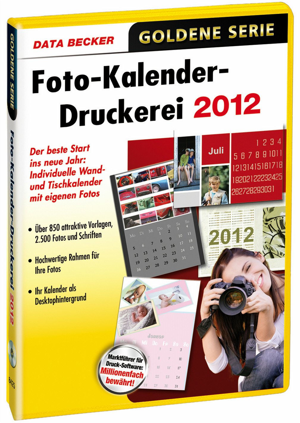 Data Becker Foto-Kalender-Druckerei 2012. Language version: German, Software type: Disk Kit. Platform: PC, Compatible operating systems: Windows 7 SP1, Vista SP2, XP SP3