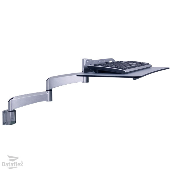 Comes with a double fixed height arm with wall mount. The 90° foldable steel keyboard platform, carries a High Pressure Laminate keyboard/mouse panel. Comes with mouse holder and cable management.