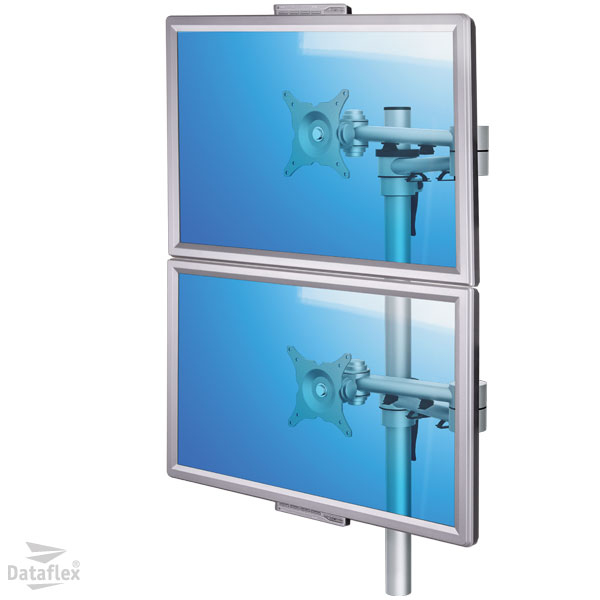 The quick adjust lever ensures easy height adjustment. Only this version has a double pivot articulating arm, making it possible to adjust the depth of the monitor anyway one whishes. Mounting one monitor vertically on the pole.