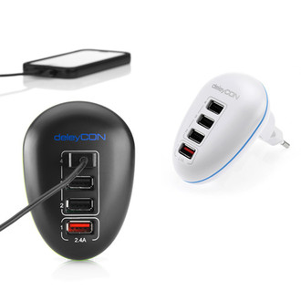 deleyCON MK-MK443. Charger type: Indoor, Charger compatibility: Universal, Power source type: AC. Colour of product: Black. Output voltage: 5 V, Maximum power: 12.5 W, Port 1 output current: 2.4 A