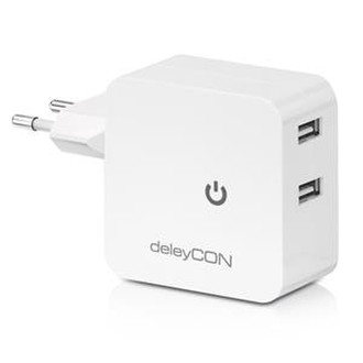 deleyCON MK-MK768. Charger type: Indoor, Charger compatibility: MP3, Mobile phone, Smartphone, Tablet, Power source type: AC. Colour of product: White. AC adapter output current: 4.8 A