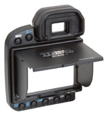 The Digital SLR Professional is designed to attach to your camera using the existing eye piece and slots around your display. It easily snaps on and off, and features an optical clear glass to protect your camera’s screen. The simple pop-up design allows for easy opening to block the glare. Buttons on the Professional shade are aligned with your camera, to reduce the wear and tear on delicate parts and components. Color and design matches your camera model.