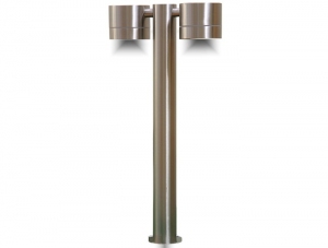GX53 garden / stand lamp made of stainless steel, double sided The wall lamp with its stylish housing made of stainless steel emits two decorative light beams. The lamp is equipped with two plastic rings that will glow when the lamp is switched on. It is particularly suitable as a lamp for outdoor use, e.g. in the garden or by the wayside. It meets the IP44 protection standard, which means it is protected against the ingress of dirt and spray water.