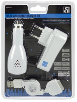 Deltaco IPOD-KIT3. Charger type: Auto, Indoor, Charger compatibility: Mobile phone, MP3, MP4, PDA, Power source type: AC, Cigar lighter. Colour of product: White. Input voltage: 12 - 24, 230