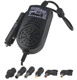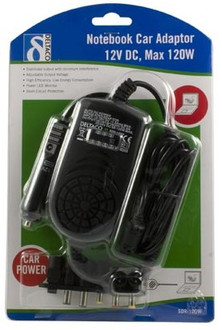 Deltaco SDR-120W. Charger type: Auto, Charger compatibility: Notebook, Power source type: Cigar lighter. Colour of product: Black. Input voltage: 11 - 16, Input frequency: 50/60. Dimensions (WxDxH): 60 x 100 x 30 mm, Package dimensions (WxDxH): 170 x 40 x 260 mm