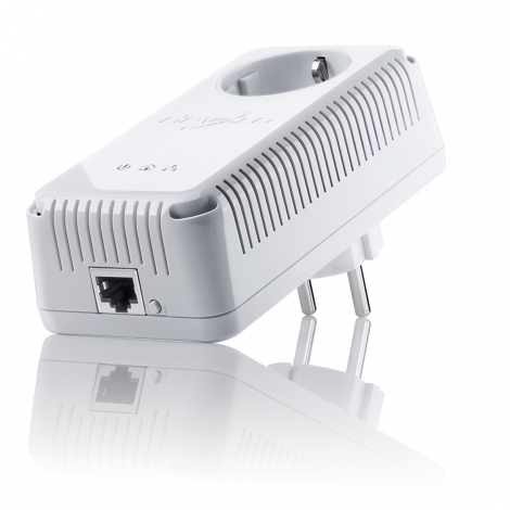 The new HomePlug AV adapter from devolo provides extra convenience for your private home network with its integrated electrical socket and mains filter. The integrated electrical socket enables additional terminal devices or multiple sockets to be connected to the adapter just like to a normal wall socket. No power supply is lost. And the integrated filter significantly improves data transmission in the home network.