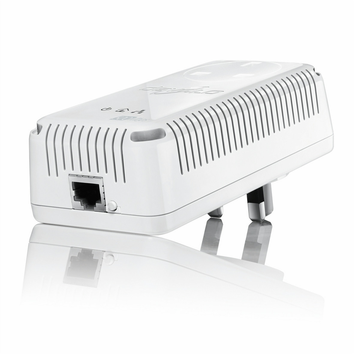 - With integrated electrical socket. No power outlet goes to waste, and the integrated mains filter ensures the best possible data transmission