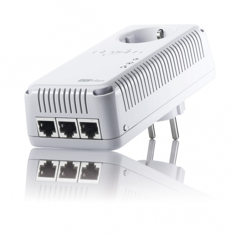 Start your home network with the dLAN® 500 AVtriple+ from devolo. You can connect up to three computers or network-compatible IT devices to this dLAN® adapter. This provides the ideal connection for PC, printer and NAS hard drive, for example. dLAN® 500 provides a transmission rate of 500 Mbps. Automatic data prioritisation ensures that there is no WLAN stutter—all devices are connected with the highest quality. The automatic 128-bit encryption offers maximum security. Moreover, with the integrated electrical socket, the dLAN® 500 AVtriple+ ensures that no power outlet goes to waste, while an integrated mains filter ensures maximum dLAN® performance.