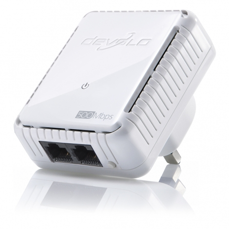 Use the dLAN® 500 duo from devolo for the optimal entrance into your own world of home networking. The easy connection via household powerlines makes the Internet available in any room in no time. Two LAN ports on the adapter allow for two devices to be directly connected, such as a computer and network printer in the home office or Smart TV and a game console in the living room. The compact housing enables flexible and unobtrusive placement at any power outlet in your home. Of course, the home network can be expanded at any time with additional adapters. This way, the innovative dLAN® technology brings the Internet into any room. There are already more than 16 million satisfied devolo customers—the Number 1 for Powerline home networks.