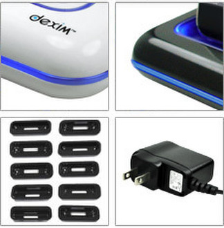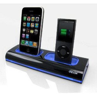 Charge your iPhone first or iPod first? Why not both simultaneously?! Now you do not need to search out the chargers for each. The dexim Dual Dock Charger enables you to charge both iPhone and iPod at the same time. Reduce the clutter on your table and bring it with you when you travel. Also includes 10 Apple dock inserts and an AC adapter. So you can simply charge both iPhone/iPod in the wall socket wherever you go. Just slip your iPod or iPhone into the connector to safely charge.