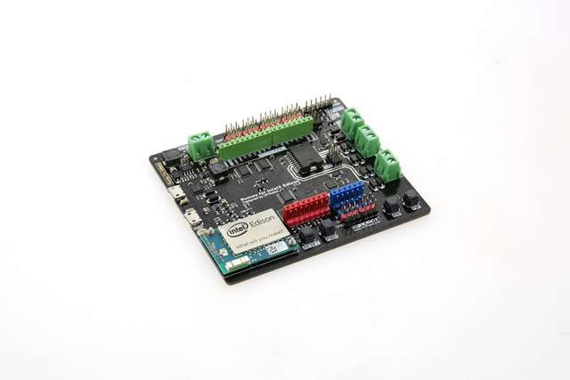 Romeo for Intel® Edison is a multi-purpose, all-in-one development platform based on Intel Edison and Arduino SoC. It is especially designed to be useful for robotics applications. Romeo for Intel® Edison is compatible with Arduino open source platform and Linux, and supports Java and C development environment. Users are able to extend this platform with thousands of existing shields and modules such as switches, sensors, LEDs, servos, motors easily with Romeo for Intel Edison. It can also be used as a standalone communication platform for software like flash, processing, Max/MSP and VVVV. The integrated 2 way DC motor driver and wireless capability allows you to start your project immediately without the need of any additional motor driver or wireless shield. The Romeo for Intel® Edison inherits all functions of the Romeo all-in-one controller and integrates powerful functions the Intel Edison board possesses. You can describe it as a control board specially designed for robotics applications, carrying the powerful gene of Intel® Edison and being compatible with Arduino.
