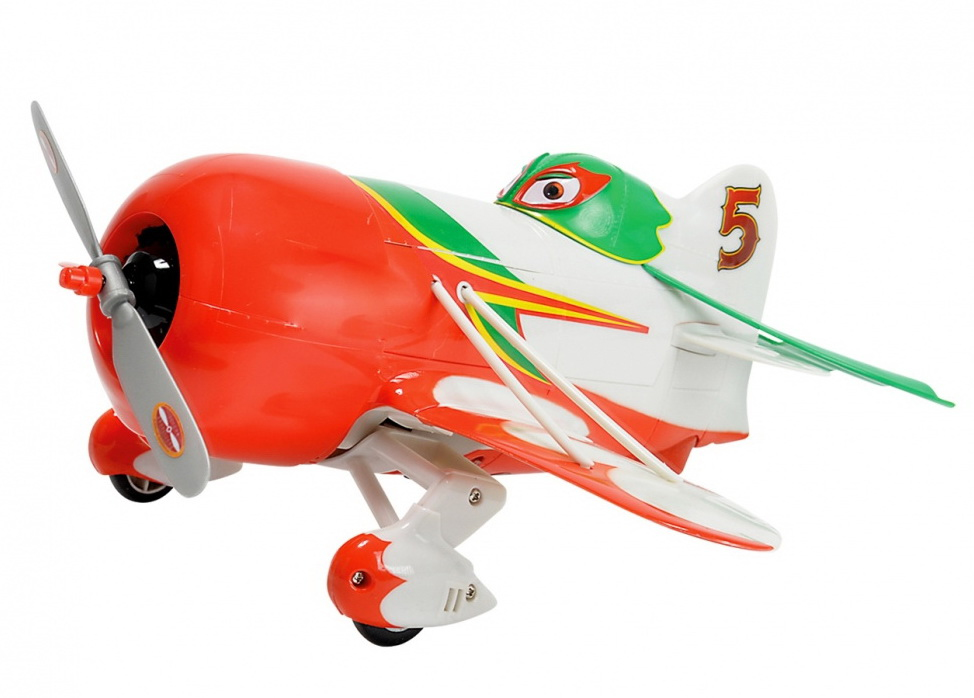 The 27 cm RC driving plane "El Chupacabra" is a perfect replica of one of the main characters in the Disney film Planes. El Chupacabra is equipped with a dual-channel wireless RC handset and a full turbo feature. The driving plane comes with sound and body drift, i.e. its wings tilt in the direction of turn. El Chupacabra is available in 27 and 40 MHz frequencies and has a range of up 10 m. 1:24 scale model. Batteries not included for the transmitter (TX) (3x 1.5V R03) and the receiver (RX) (3x 1.5V R6). Playing time: approx. 60 minutes. Top speed of 5.5 kmph. Recommended for children from age 4