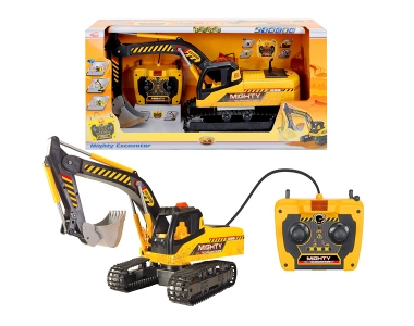 The 70 cm Mighty Excavator comes with a cable remote control, full driving functions, a rotatable crane and moving arm. The excavator is also equipped with light and sound. 1:14 scale model; batteries not included (6x 1.5V R6). Recommended for children from age 3
