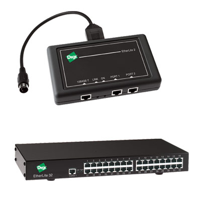 The EtherLite family of terminal servers blends the control and performance of asynchronous serial communications with the convenience of an Ethernet connection. Available in two- to 32-port versions, the traffic from all serial ports is serviced by a single TCP/IP session.