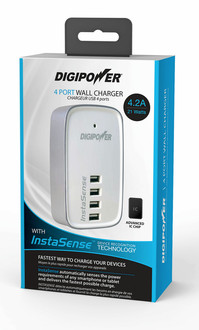 The ACD-400i is a 4 USB port wall charger which features InstaSense, a new advance technology which automatically senses the power requirements of any smartphone or tablet and delivers the fastest possible charge. you can charge up to 4 devices at once with this convenient charger! And it uses Instasense, so the dives that take a little longer to charge will get the power they need to charge more rapidly. This is a great way to stay organized at your family's charging station without tangling cords or having to have multiple devices charging at several outlet all over the house. charges smartphones, iphones, tablets, or any other device that charges from a USB cable. Enjoy convenient and hassle free charging with this handy wall charger - what will we think of next?