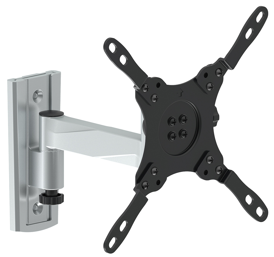 Digital Data Communications 650106. Maximum weight capacity: 15 kg, Minimum screen size compatibility: 33 cm (13"), Maximum screen size compatibility: 106.7 cm (42"). Tilt angle: -15 - 15°, Swivel angle range: -90 - 90°, Distance to the wall (max): 2.35 cm. Colour of product: Black, Silver, Material: Steel