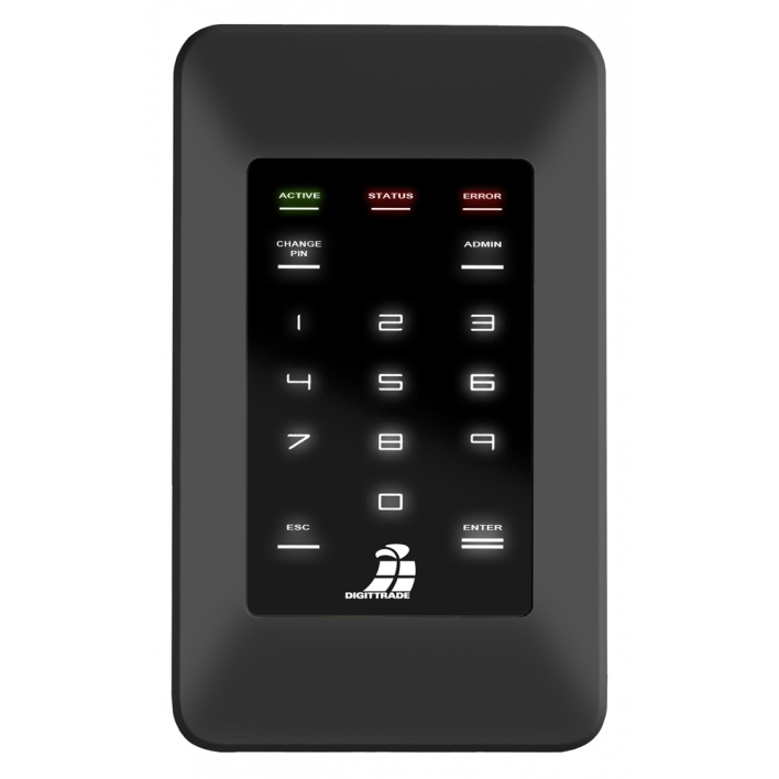 Thanks to the full disk hardware encryption according to the 256 bit AES in CBC mode and the two factor authentication, by smartcard and 8-digit PIN, the DIGITTRADE HIGH SECURITY HDD combines the benefits of mobile data media with highest security standards for data privacy.