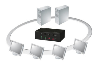 With this video matrix splitter it is possible to choose one video signal out of two video source and to display the signal on several monitors.