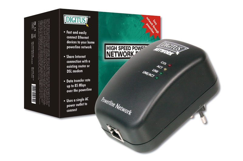 - Downward compatible to Digitus 14 Mbps Powerline Adapter