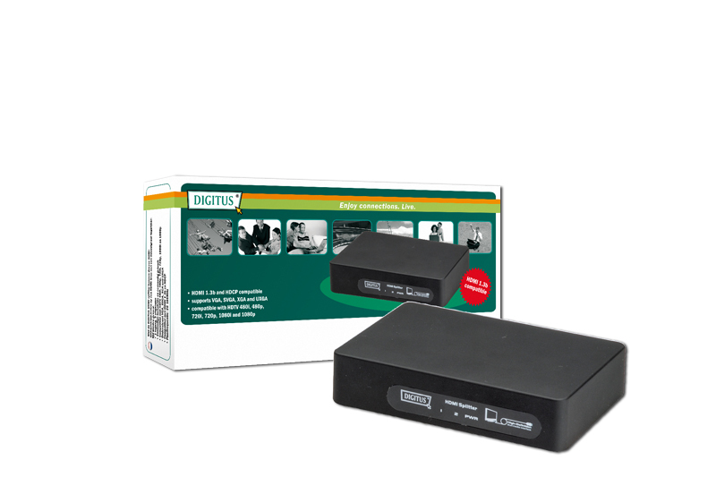 - With the DIGITUS HDMI splitter you can supply several HDMI displays from only one HDMI device.