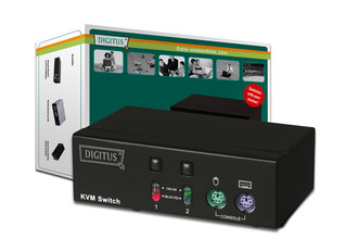 DIGITUS KVM Switch 1User, 2PCs, PS/2, Desktop, w/o Cable, Mouse Clicking Function