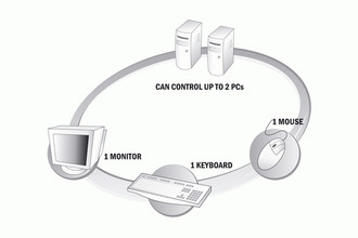 Simplify your workspace with only one monitor, keyboard and mouse for all connected computers - saves space and money