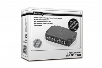 DIGITUS Video Splitter compact 1 PC- 4 Monitors, 350 MHz, HDSUB 15/M - 4x HDSUB 15/F Max. Res. 2048x1536p