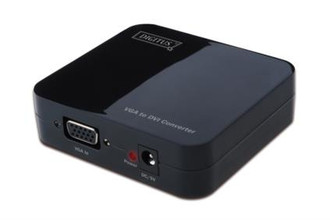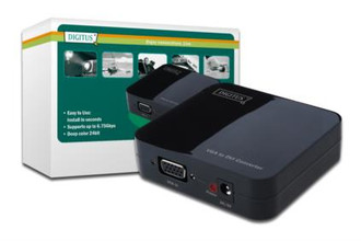 This conversion box converts an analog signal from a standard VGA video source to a digital DVI signal. So it is for example possible to use an old analog graphic card with a new DVI monitor or projector.