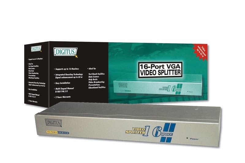 - Video bandwidth 250 MHz - Maximum resolution 1920 x 1440 pixels at 60 Hz - Built-in line amplifier, up to 65 m - Cascadable (max. 64) - Metal housing for better EMI shielding