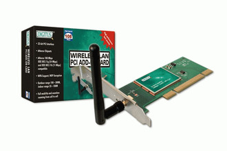 Digitus WLAN PCI Adapter 108Mbps. Connectivity technology: Wireless, Host interface: PCI. Data transfer rate (max): 108 Mbit/s. Chipset: Atheros. Security algorithms: 128-bit WEP,WPA. Compliance industry standards: IEEE 802.11b, IEEE 802.11g, 802.11g+, Compatible operating systems: Windows 98SE/ME/2000/XP/Vista