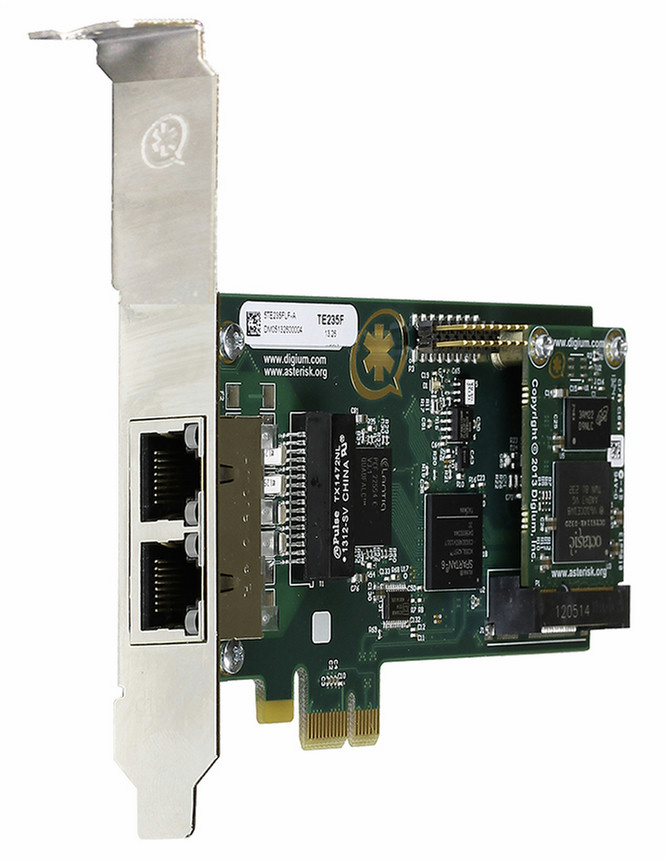 Dual span digital cards are available in PCI and PCI-Express form factors. All dual span models can be combined with an Octasic DSP-based echo cancellation module from Digium to provide effective hardware echo cancellation across all channels.