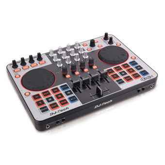 The 12 rubber buttons on each deck provide direct access to Loop, Hot Cue, and Transport controls. The 4Mix has also been configured to use the volume knob and play buttons for direct access to Virtual DJs Sampler feature.