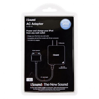 The Made for iPod i.Sound AC Adapter with Apple pin allows you to charge your iPod from any wall outlet. The system’s rugged design makes it perfect for long term use, and it is compatible with all iPod models which use a 30 pin dock connector port.