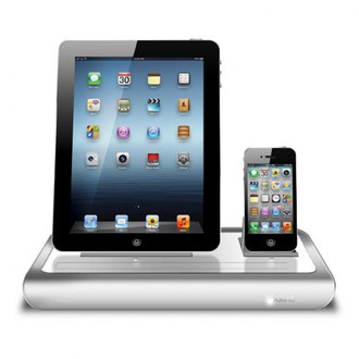 The Power View Pro S is the perfect charging dock for all Apple devices with a standard 30-pin port including iPad 1 & 2, iPhones, iPod touches and more (see sell sheet for complete list of devices). The sliding backrest design allows for customizing the depth of the dock, allowing the user to adjust to the perfect viewing angle, with or without most cases*. It has 2 docks for charging an iPhone, iPad or iPod at the same time. It also has 2 USB ports for charging 2 extra devices via cable, horizontal viewing stand for the iPad and a 100/240Volt AC Adapter. The dock delivers 2.1A on each connector for fast charging.