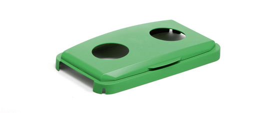 Rectangular frame with hinged lid with two circular holes for the disposal of bottles or cans. The lid is easy to attach to all DURABIN 60 bins with a clip-on hinge.