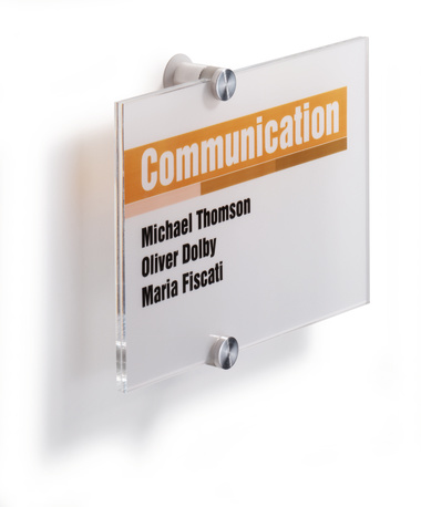 Elegant and modern door sign range, made of high quality Perspex. The high value appearance is achieved through the use of crystal clear acrylic plates and semi-transparent inserts. The door sign can be easily mounted and is supplied with 2 aluminum screws. The inserts can be easily printed with laser printer.